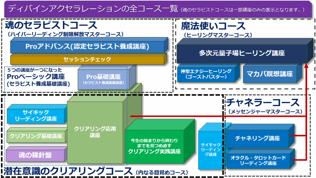 魂のセラピストコース以外の全容(多次元量子場ヒーリング講座を目指されたい人向け情報)は以下の通りです。