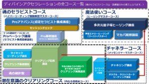 目次 Toggle潜在意識のクリアリングコース(内なる目覚めコース) の全容全ての人にお勧めな3つの必須講座上記3つの講座を受講したら受けられるようになるサイキックな目覚めが加速していく統合講座一生に一度は受けて欲しい、(手遅れになる前に)自分にとって最も大切なことに気づけるようになる講座(ハイパーリーディングを取り入れた)お相手の魂に寄り添えるプロのセラピストを目指したい方向けの講座 潜在意識のクリアリングコース(内なる目覚めコース) の全容 潜在意識のクリアリングコース の全容(表) は、こちらをクリックしてください 潜在意識のクリアリングコースの全容(図解)は、 こちらをクリックしてください。 全ての人にお勧めな3つの必須講座 魂の羅針盤講座 潜在意識と制限された状態への理解が深まり魂の羅針盤が手に入る始まりの講座… 続きを読む クリアリング基礎講座 潜在意識と制限された状態への理解が深まり制限解放ができるようになる始まりの講座… 続きを読む サイキックリーディング講座 サイキックに目覚め宇宙意識との対話がスタートする始まりの講座… 続きを読む 上記3つの講座を受講したら受けられるようになるサイキックな目覚めが加速していく統合講座 クリアリング応用講座 サイキックなリーディングを取り入れた制限解放ができるようになる統合講座… 続きを読む 一生に一度は受けて欲しい、(手遅れになる前に)自分にとって最も大切なことに気づけるようになる講座 (今生の始まりから終わりまでを見つめ直す) クリアリング実践講座 人としてこの人生で最も大切なことに気づかされることになる制限解放講座 … 続きを読む (ハイパーリーディングを取り入れた)お相手の魂に寄り添えるプロのセラピストを目指したい方向けの講座 Pro基礎講座 主体性を軸に、心や人生や魂の滞りを素早く見抜き解消していく事ができるようになるセラピスト養成基礎講座 … 続きを読む FacebookXBlueskyHatenaCopy